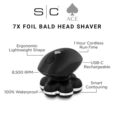 Bald is beautiful, and the StyleCraft Ace 7X foil shaver can help you achieve a smooth, comfortable shave. Designed for precision and ease, its seven flexible, floating foil shaver heads adjust seamlessly to any shape and feature innovative contouring technology. Get a close and consistent shave every time. The super-charged motor operates at an impressive 8,500 RPM, minimizing drag and irritation for a smoother shave every time. Powered by a high-capacity Lithium-ion battery, it offers up to 1 hour of cordless run-time on a single charge. Know how much power you have left with the digital LCD, displaying power status and precise remaining battery life.