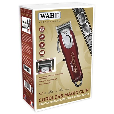 This cordless tool offers superior speed and ease of use, a convenient taper lever for easy fading and blending, and a lithium ion battery for a 90+ minute run time per charge. It also has a cord/cordless cutting capability. For your convenience, the 5-Star Cordless Magic Clip comes with all accessories required for use.